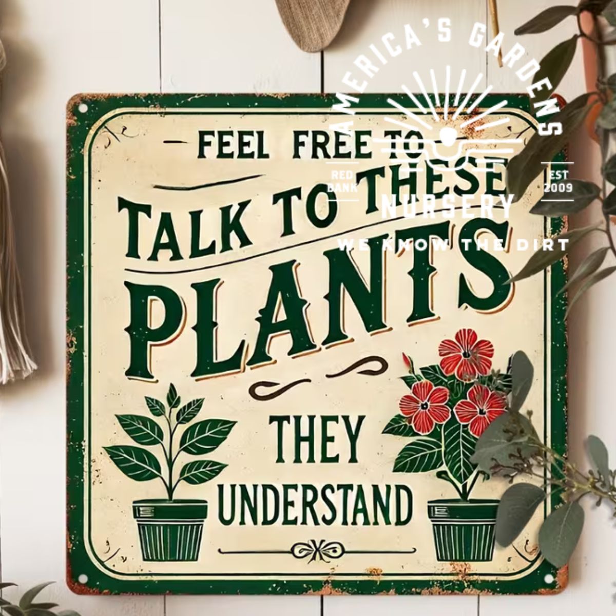 Vintage Metal Talk To These Plants Sign